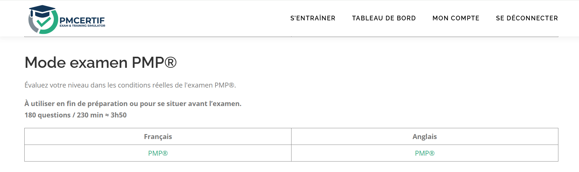 Mode entraînement PMP®