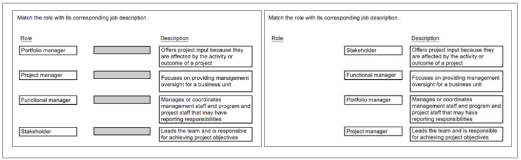 - Le principe : Vous devez cliquer sur des éléments (dans une colonne source) et les faire glisser vers leur emplacement correct (dans une colonne cible).