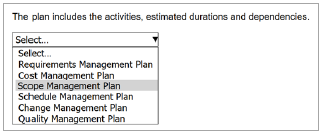 - L'application : Le scénario peut, par exemple, décrire une situation de dérive budgétaire et vous demander de cliquer sur la barre correspondante dans un diagramme de Gantt ou sur un point précis d'une courbe en S.